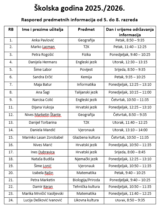 Raspored informacija predmetnih nastavnika Adresa škole Bana Josipa Jelačića 123211 Pakoštane Kontakt 023/381-042 os-pakostane@os-pakostane.skole.hr Korisni linkovi Ministarstvo znanosti i obrazovanja CARNET CARNET Helpdesk za škole Portal za škole Edutorij Izradu ove mrežne stranice sufinancirala je Europska unija iz europskih strukturnih i investicijskih fondova.