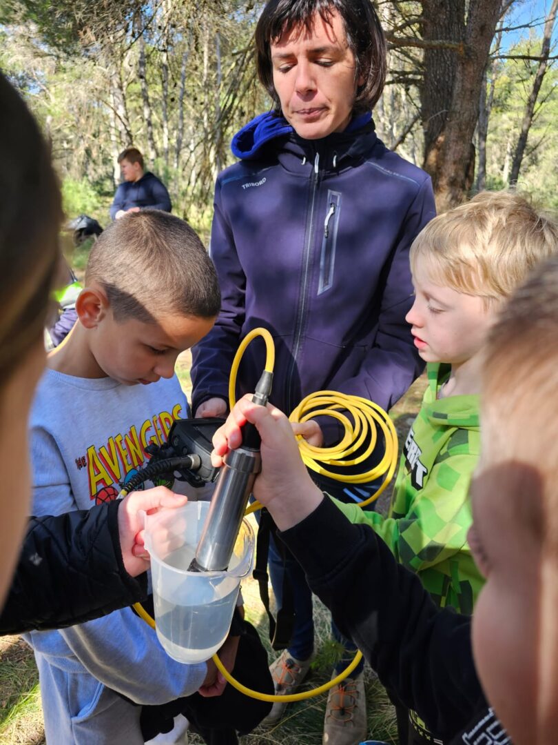 Podjeljeni u tri grupe, učenici su pokusom pokazali što se u jezeru događa opadanjem vode i ulijevnjem mora u jezero. Mjerili su slanost jezera posebni uređajem.