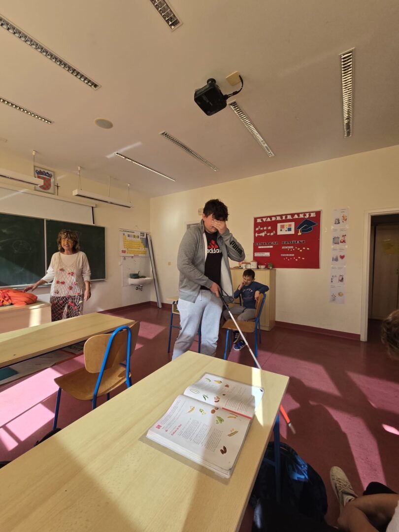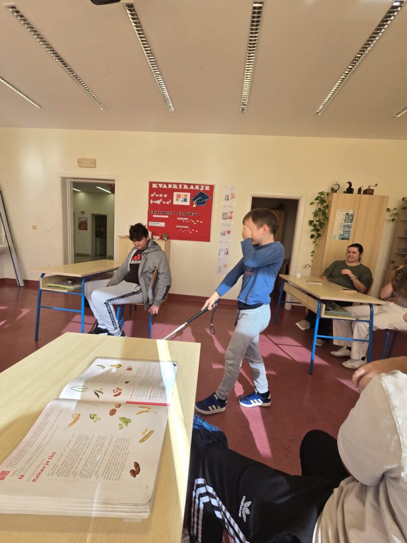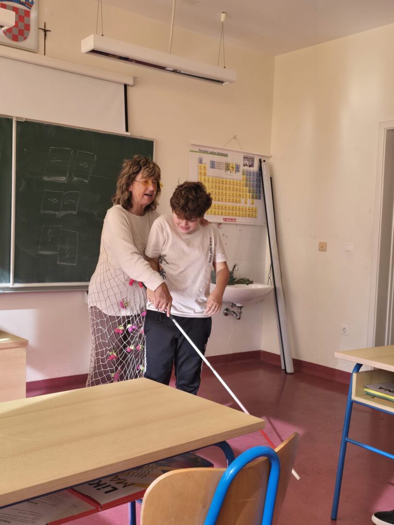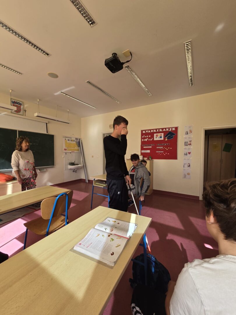 Tijekom susreta učenici su na trenutak mogli osjetiti kako je biti slijepa osoba- kretali su se po učionici koristeći bijeli štap, što im je pomoglo da još bolje razumiju njezin svijet i snagu kojom svakodnevno savladava izazove.